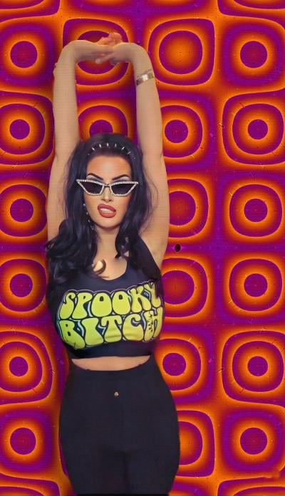 Spooky Bitch body-hugging crop top.